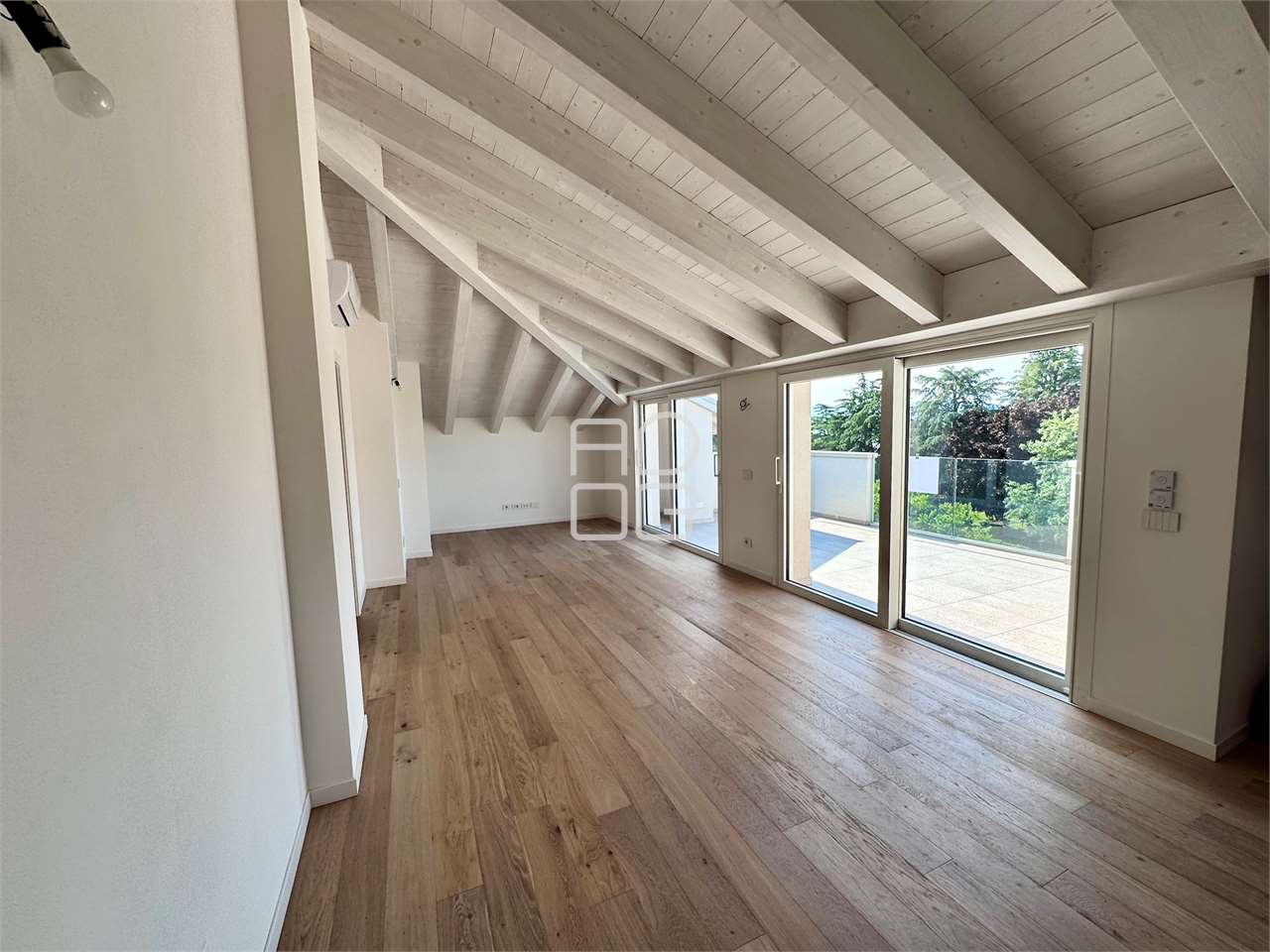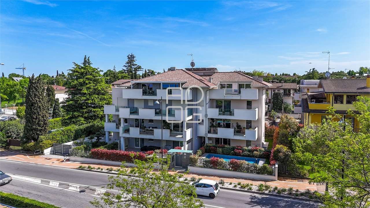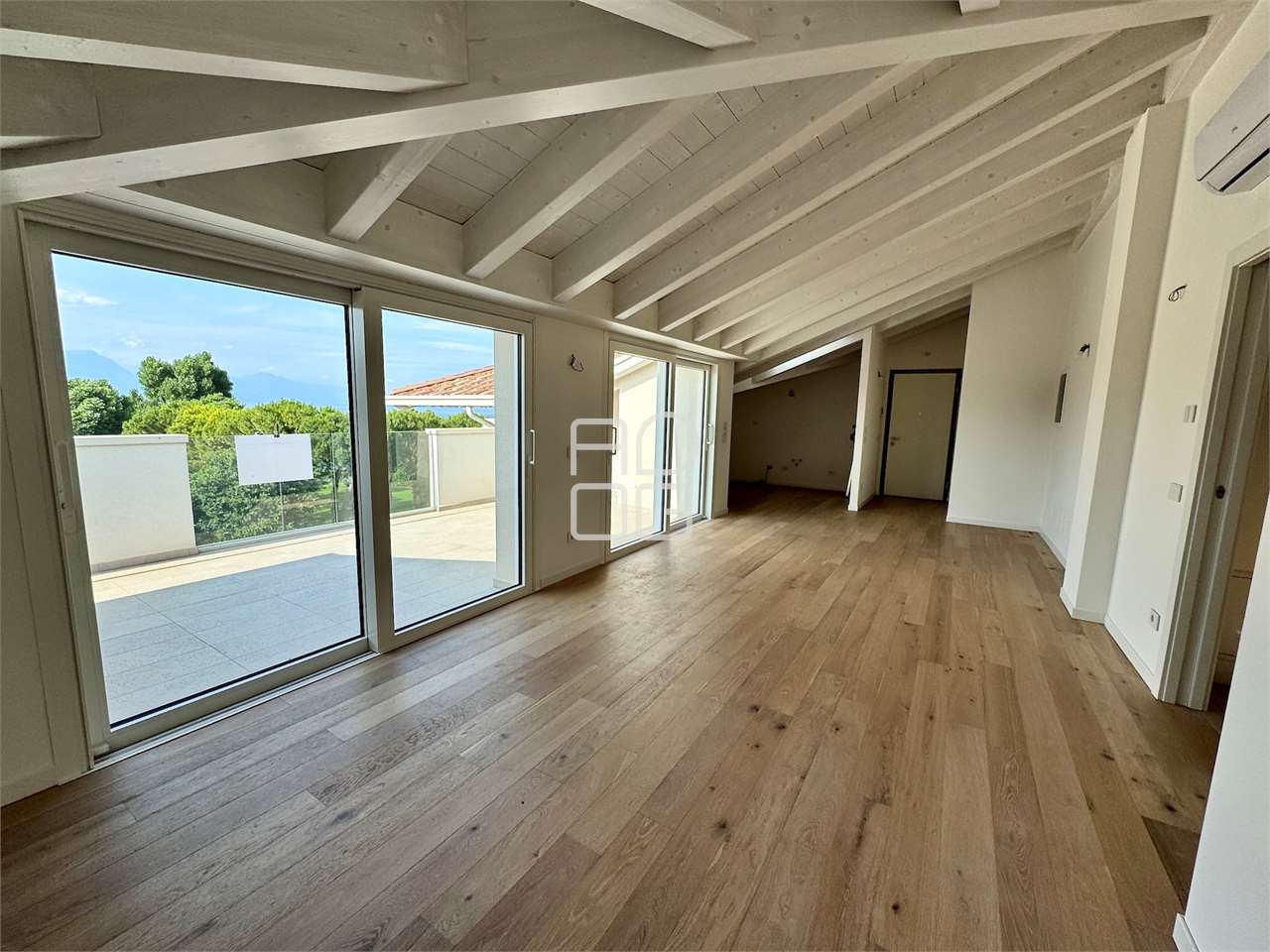 In privilegierter Lage, nur wenige Schritte vom See entfernt und am Eingang des charakteristischen historischen Zentrums von Rivoltella, bieten wir ein elegantes Penthouse mit herrlichem Blick auf den Gardasee zum Verkauf an, gelegen in einer stilvollen, kürzlich erbauten Wohnanlage mit nur zehn Wohneinheiten und Gemeinschaftspool. Die Wohnung befindet sich im dritten und letzten Stockwerk und ist bequem mit dem Aufzug erreichbar. Sie besticht durch einen großzügigen und hellen Wohnbereich mit Küchenzeile, der durch große Panoramafenster auf den See blickt und direkten Zugang zur herrlichen Terrasse bietet – ideal für entspannte und gesellige Momente im Freien. Ein praktischer Flur führt in den Schlafbereich, bestehend aus einem Hauptschlafzimmer mit eigenem Bad, einem zweiten geräumigen Schlafzimmer und einem weiteren Badezimmer. Ergänzt wird die Immobilie durch eine große Doppelgarage im Untergeschoss, die direkt mit dem Aufzug erreichbar ist und über einen Keller-/Waschraum mit bereits vorhandenen Anschlüssen verfügt. Die Wohnung, neu und noch nie bewohnt, ist mit modernster Haustechnik und hochwertigen Ausstattungen versehen und eignet sich ideal sowohl als Hauptwohnsitz als auch als exklusive Ferienresidenz. Ein exklusives und privates Umfeld, perfekt für alle, die den Komfort der städtischen Infrastruktur suchen, ohne auf die Schönheit des Gardasees zu verzichten. Für weitere Informationen und Besichtigungen stehen wir gerne zur Verfügung.