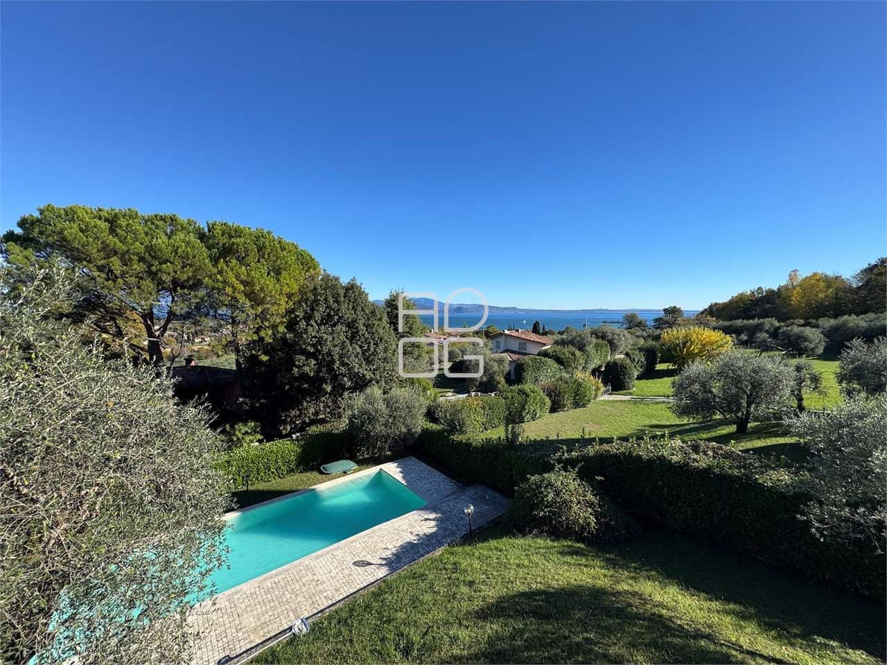 In einem eleganten Hügellandschafts-Kontext, eingebettet im Grünen und mit hervorragender Privatsphäre, bieten wir eine prestigeträchtige, freistehende Villa von ca. 300 m² mit einem wunderschönen privaten Garten von etwa 1.500 m² und herrlichem Blick auf den Gardasee an.