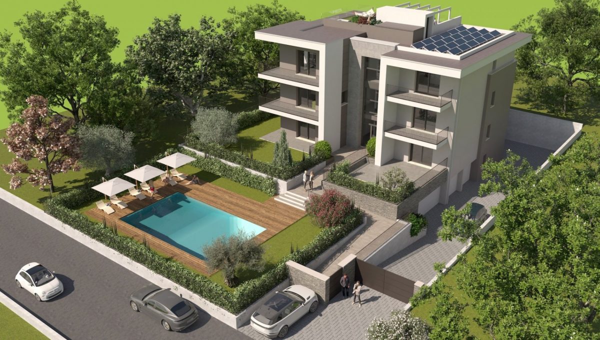 In kurzer Entfernung vom Stadtzentrum und dem Bahnhof von Desenzano del Garda, in einer ruhigen und eleganten Wohngegend mit Nähe zu allen Annehmlichkeiten, bieten wir diese exklusive Wohneinheit in einem Designergebäude namens „RESIDENZA AI POETI“ an. Das Gebäude umfasst nur fünf prestigeträchtige Wohneinheiten mit einem wunderschönen Poolbereich und gemeinsamen Außenflächen. Das Gebäude mit modernem Design wird mit besonderer Aufmerksamkeit für bauliche Details und hochwertigen Ausführungen errichtet, die echte Energieeffizienz der Klasse A gewährleisten. Dieses hochmoderne Bauwerk umfasst erdbebensichere Merkmale, ein Basis-Fernsteuerungssystem für Hausautomation, eine Video-Gegensprechanlage, eine Photovoltaikanlage, Fußbodenheizung, eine vorbereitete Klimaanlage, einen Aufzug sowie hochwertige, personalisierbare Materialien gemäß Baubeschreibung. Die Immobilie bietet wunderschöne Außenbereiche, die sich ideal für Entspannung und Mahlzeiten im Freien eignen. Hervorragende Helligkeit wird durch die großen Fensteröffnungen in allen Räumen gewährleistet, die direkten Zugang zu den Außenbereichen bieten. Im Untergeschoss, das über das Treppenhaus und den Aufzug erreichbar ist, stehen geräumige Garagen zur Verfügung, mit Preisen ab 62.000 €. Wir stehen Ihnen gerne für weitere Informationen, Unterlagen, Projektbeschreibungen und Besichtigungstermine zur Verfügung.