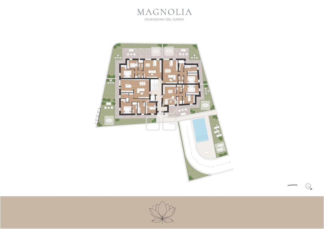 In exklusiver Lage bieten wir eine elegante Dreizimmerwohnung im ersten Stock mit großzügiger Terrasse an, eingebettet in eine moderne Wohnanlage mit nur 11 Wohneinheiten, ausgestattet mit einem gemeinschaftlichen Swimmingpool und gelegen im Zentrum von Desenzano del Garda.