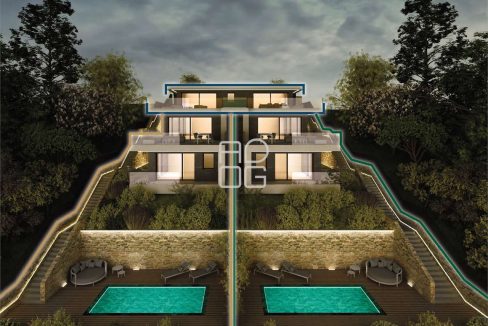 In der herrlichen Umgebung des Gardasees, auf der Anhöhe über der Stadt Torri del Benaco mit einem dominanten und herrlichen Blick auf den See, ist „Perla Blu“ ein Wohngebäude, das im Zeichen der Innovation und des Designs konzipiert wurde. Ein technologisch fortschrittlicher Komplex mit komfortablen Wohneinheiten, die den persönlichen Bedürfnissen und Wünschen angepasst werden können, um eine hohe Lebensqualität in Ihrer Prestige-Wohnung zu garantieren. Jeder Raum ist so konzipiert, dass er die Harmonie der Wohnung fördert, vom Wohnbereich bis zum Schlafbereich. In diesem neuen und prestigeträchtigen Wohnkomplex mit nur 3 exklusiven Einheiten, der im Namen der Innovation, der zeitgenössischen Technologie gebaut wurde, bieten wir eine wunderschöne Wohnung mit dominantem Seeblick zum Verkauf. Die Wohnung mit dem Namen „PB SUITE PANORAMA“ erstreckt sich über zwei Ebenen, die durch eine Innentreppe miteinander verbunden sind, und verfügt über große Fenster mit weiten Terrassen auf beiden Ebenen und einen schönen privaten Garten mit Swimmingpool. Im Obergeschoss befindet sich der große Wohnbereich mit offener Küche und Zugang zur schönen Terrasse mit Seeblick, ein Doppelschlafzimmer, ein Bad und ein Raum für Waschmaschine und Trockner. Die Innentreppe führt hinunter in den Schlafbereich mit drei weiteren Schlafzimmern, zwei davon mit begehbarem Kleiderschrank, zwei Badezimmern und einer großen Terrasse. Vom gesamten Haus aus hat man einen atemberaubenden Blick auf das blaue Wasser. Eine große Doppelgarage und zwei überdachte Privatstellplätze runden das Angebot ab. Die Einheit profitiert auch von einem Aufzug in exklusiver Nutzung mit dem Penthouse (Dachgeschoss) und eine Hebebühne für die Zufahrt zu den Garagen. Für weitere Informationen zu dieser exklusiven und prestigeträchtigen Anlage und eine Besichtigung vor Ort stehen wir Ihnen gerne zur Verfügung.