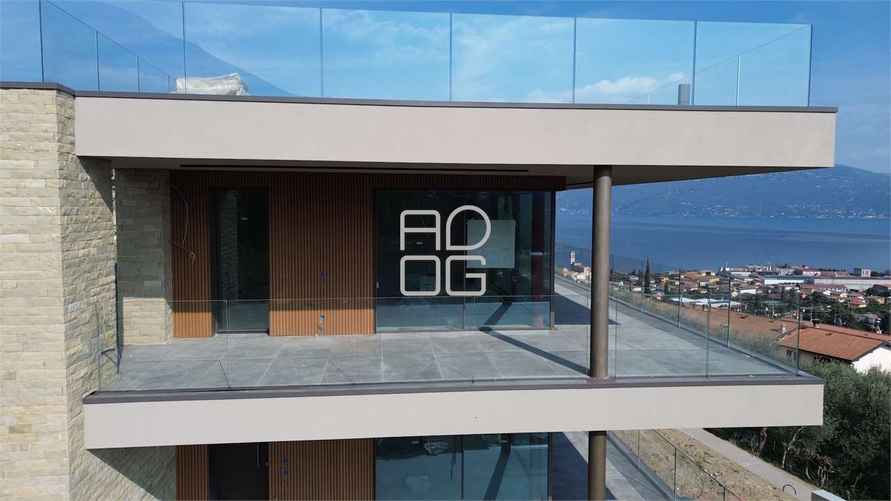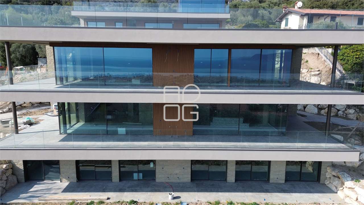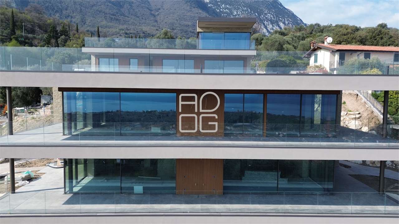 Die Wohnung befindet sich im obersten Stockwerk und besteht aus einem hellen Wohnbereich mit offener Küche, der durch große Glasflächen auf eine großzügige überdachte Loggia mit herrlichem und ungestörtem Panoramablick auf den See führt. Über den Flur gelangt man in den Schlafbereich mit zwei geräumigen Schlafzimmern, darunter ein Hauptschlafzimmer mit begehbarem Kleiderschrank, beide mit Zugang zur privaten Loggia, sowie zwei Badezimmern. Über eine exklusive Treppe gelangt man auf das wunderschöne Dachsolarium mit herrlichem Blick über den gesamten Gardasee, wo verschiedene Relaxbereiche, Ess- und Wohnzonen sowie eine sommerliche Outdoor-Lounge geschaffen werden können, mit der Möglichkeit eines privaten Mini-Pools.