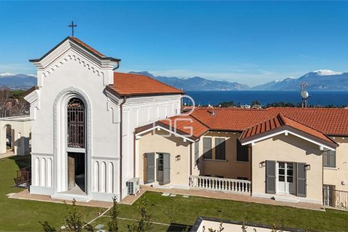 In der renommierten Gemeinde Desenzano del Garda, in erhöhter und panoramischer Lage in einem eleganten Umfeld, präsentieren wir die prestigeträchtige Residenz „Villa del Sole“, bestehend aus exklusiven Wohneinheiten. Dieses bedeutende Anwesen aus den frühen 1900er-Jahren ist von einem herrlichen Park umgeben und bietet einen wunderschönen Blick auf den See. Es beherbergt zehn einzigartige Residenzen mit gemeinschaftlich genutztem Pool, Grünflächen und SPA-Bereich. Die originale Architektur wurde vollständig erhalten und mit großer Sorgfalt restauriert, wobei der historische Charme dieser denkmalgeschützten Villa bewahrt wurde. Die Anlage besteht aus zwei separaten Gebäuden: der historischen Villa, die sich über vier Etagen erstreckt, und einem zweiten Gebäude mit zwei Stockwerken, das durch eine stimmungsvolle, entweihte Kapelle bereichert wird. Beide Gebäude fügen sich harmonisch in die umliegende Landschaft ein und bieten Blick ins Grüne und auf den Gardasee. Die Residenz zeichnet sich durch besondere Liebe zum Detail, hochwertige Innen- und Außenausstattungen sowie modernste technologische Anlagen aus. Auch den Gemeinschaftsbereichen und Grünzonen wurde besondere Aufmerksamkeit geschenkt, um Komfort und Eleganz zu gewährleisten. Im Untergeschoss befinden sich Garagen, Kellerräume, der SPA-Bereich und ein beeindruckender Pool mit Solariumbereich, sowie reservierte Stellplätze für Eigentümer und Gäste. In diesem wunderschönen Ambiente bieten wir eine exklusive und außergewöhnliche Wohneinheit an, die in einer eindrucksvollen, entweihten Kapelle auf zwei Ebenen realisiert wurde. Im Erdgeschoss befindet sich ein großzügiger Wohnbereich mit offener Küche sowie große private Gartenbereiche, die zum Verweilen im Freien einladen. Das Untergeschoss, über eine Innentreppe verbunden, umfasst zwei Schlafzimmer, zwei Badezimmer und einen privaten Innenhof. Ein privater Tiefgaragenstellplatz ist im Angebot enthalten. Verschiedene Wohnungsgrößen und -typen auf den unterschiedlichen Ebenen des Gebäudes stehen zur Verfügung. Für weitere Informationen, Grundrisse, Baubeschreibung oder eine Besichtigung vor Ort stehen wir Ihnen gerne zur Verfügung.