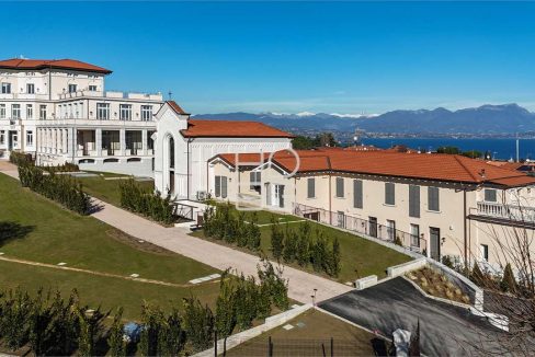 Im renommierten Gemeindegebiet von Desenzano del Garda, in erhöhter und panoramischer Lage innerhalb eines eleganten und gepflegten Umfelds, präsentieren wir die prestigeträchtige Residenz „Villa del Sole“, bestehend aus exklusiven Wohneinheiten. Dieses bedeutende Anwesen aus den frühen 1900er Jahren, umgeben von einem herrlichen Park und bereichert durch einen traumhaften Seeblick, beherbergt zehn einzigartige Residenzen, die über einen gemeinsamen Pool, Grünflächen und einen SPA-Bereich verfügen. Die originale Architektur wurde vollständig erhalten und mit großer Sorgfalt restauriert, wobei der historische Charme dieser denkmalgeschützten Villa bewahrt wurde. Der Komplex besteht aus zwei separaten Gebäuden: der historischen Villa, die sich über vier Etagen erstreckt, und einem zweiten zweigeschossigen Gebäude, das durch das Vorhandensein einer stimmungsvollen, entweihten Kapelle ergänzt wird. Beide Bauwerke fügen sich harmonisch in die umgebende Landschaft ein und bieten einen Blick ins Grüne sowie auf den Gardasee. Die Residenz zeichnet sich durch viel Liebe zum Detail, hochwertige Innen- und Außenverarbeitungen sowie den Einsatz modernster technischer Anlagen aus. Auch den Gemeinschaftsbereichen und Grünanlagen wurde besondere Aufmerksamkeit geschenkt, um höchsten Komfort und stilvolle Eleganz zu gewährleisten. Im Untergeschoss befinden sich Garagen, Kellerräume, der SPA-Bereich und ein eindrucksvoller Pool mit Solariumbereich sowie reservierte Parkplätze für Eigentümer und Gäste. Innerhalb dieses exklusiven Kontexts bieten wir eine elegante Wohneinheit auf zwei Ebenen an. Im Erdgeschoss befinden sich ein großzügiger Wohnbereich, eine Wohnküche, ein Badezimmer, ein Schlafzimmer, ein privater Garten auf zwei Seiten sowie ein hübscher Innenhof, der sich ideal für Mahlzeiten im Freien eignet. Im Obergeschoss, das über eine interne Treppe erreichbar ist, befinden sich drei Schlafzimmer und drei Badezimmer. Die Immobilie wird durch eine praktische private Garage im Untergeschoss komplettiert. Es stehen verschiedene Wohnungstypen mit unterschiedlichen Größen und Grundrissen zur Verfügung, die sich auf die verschiedenen Ebenen der Residenz verteilen. Für weitere Informationen, Grundrisse, die Bau- und Ausstattungsbeschreibung oder zur Vereinbarung eines Besichtigungstermins stehen wir Ihnen gerne zur Verfügung.