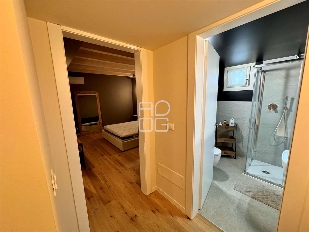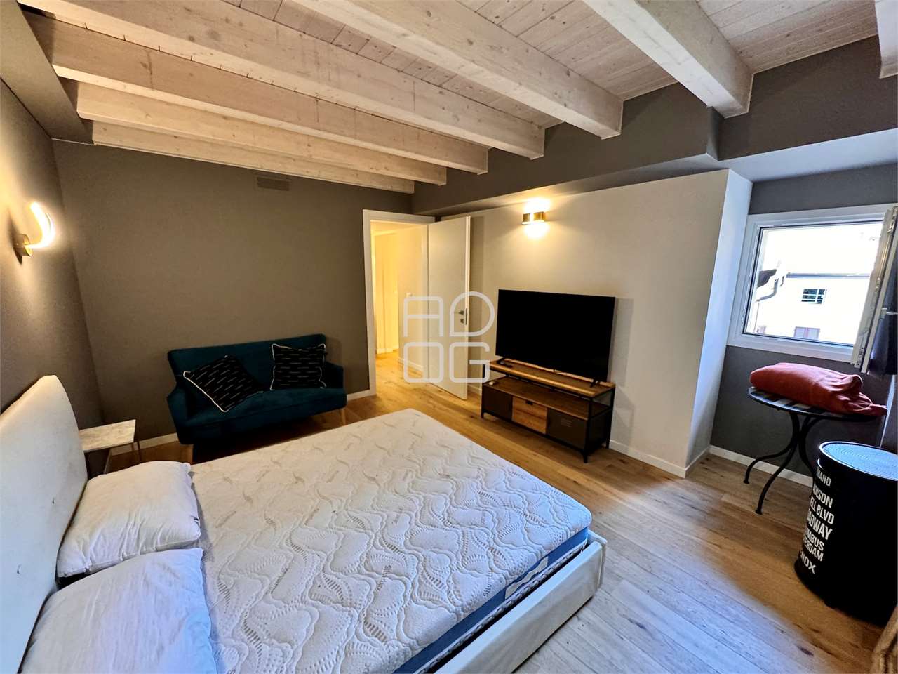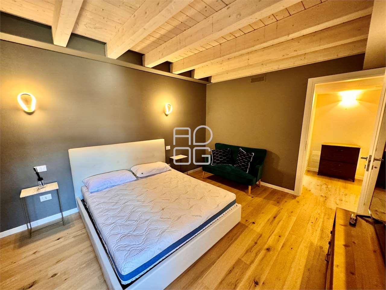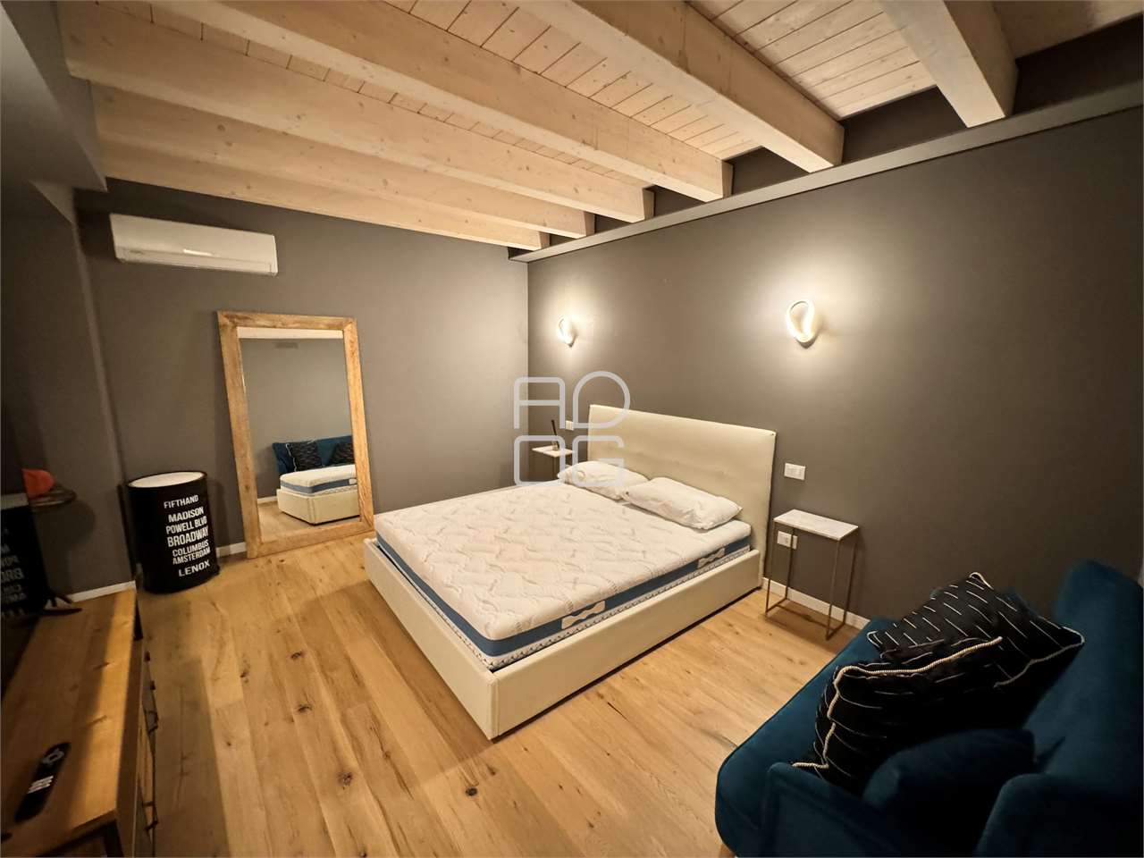 Im Herzen der Altstadt von Desenzano del Garda, mit direktem Zugang vom Hauptplatz und Blick auf einen reizvollen Innenhof, steht eine elegante Wohnung in einem aufwendig renovierten historischen Palazzo zum Verkauf. Die Wohnung befindet sich im ersten Stock und erstreckt sich über zwei Ebenen. Der Eingangsbereich führt in ein helles Wohnzimmer mit Kochbereich und einem charakteristischen kleinen Balkon. Eine bequeme Innentreppe führt in den Schlafbereich, der ein großzügiges Schlafzimmer mit Blick auf den Hof, ein Badezimmer mit Dusche sowie einen praktischen Abstellraum umfasst.