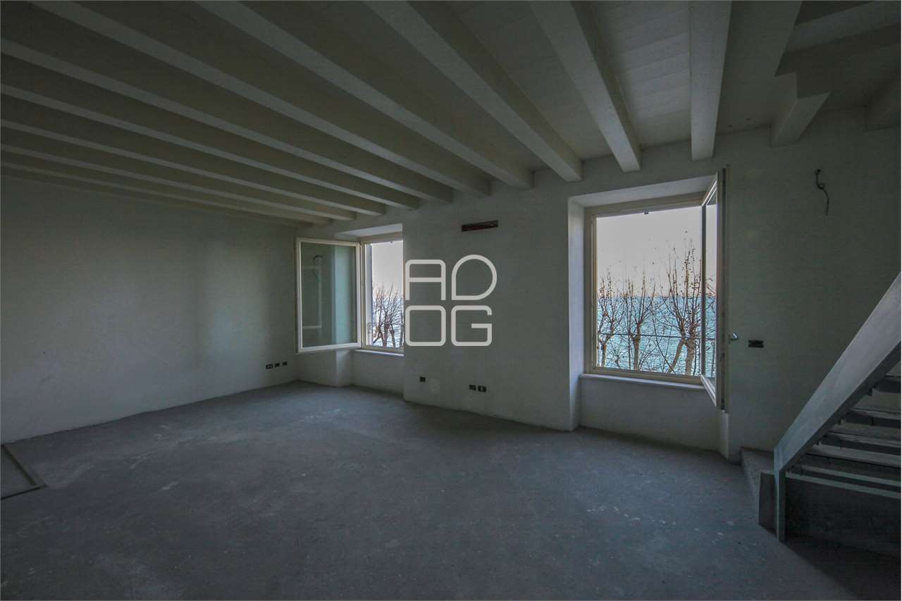 Die Wohnung befindet sich im zweiten und obersten Stockwerk mit direktem Seeblick und herrlicher Aussicht, auf zwei Ebenen verteilt. Der aktuelle Zustand ist fortgeschrittener Rohbau mit der Möglichkeit, die Raumaufteilung und die Innenausstattung individuell zu gestalten. Mögliche Aufteilung: Wohnbereich mit offener Küche; auf der oberen Mansardenebene ein großzügiges Hauptschlafzimmer mit Bad.