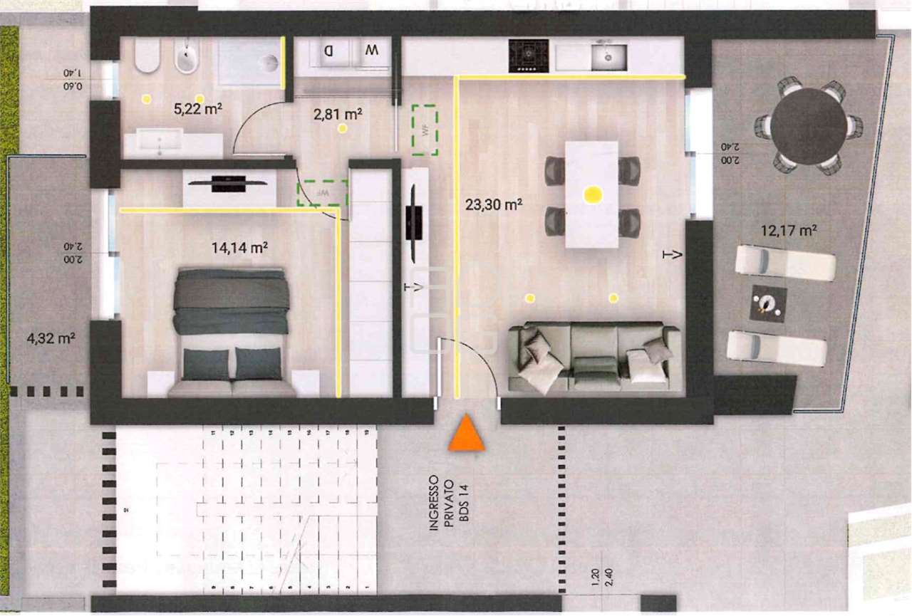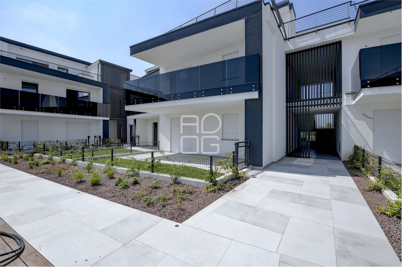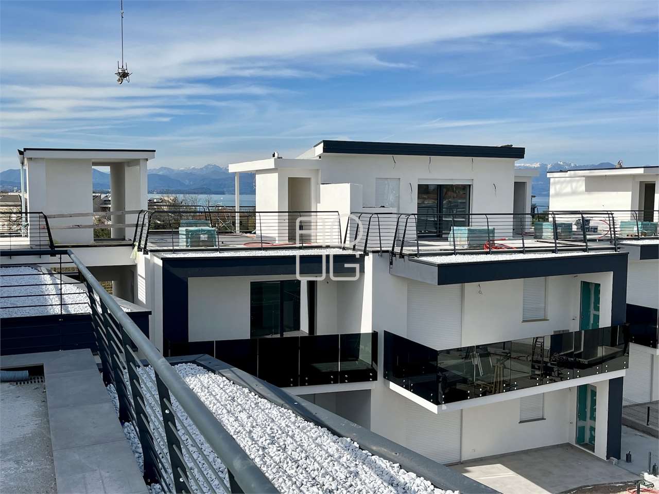 In San Benedetto di Lugana on the entrance of the city of Peschiera del Garda, in a serviced area convenient to the lake and the beach as well as to the main services, inserted in a modern and prestigious context of new construction with pool consisting of 18 residential units, we offer for sale two-room flat on the first floor with private sundeck. The flat consists of a bright living room and kitchen with large window overlooking the large terrace, a livable hallway, a bathroom and a large double bedroom with balcony from which to enjoy beautiful views of the lake. Through a private external staircase we access the sundeck area complete with predispositions for a whirlpool bath and a covered area ideal for creating a living area with outdoor kitchen, all enriched by beautiful views of the lake. High-quality finishes that can be customised by the client according to excellent specifications. Complex with low running costs. A convenient garage in the basement completes the property. Possibility of purchasing a cellar. We remain at your disposal for further information and on-site visit.