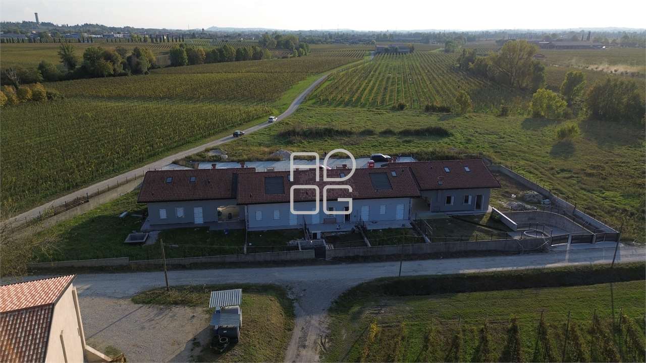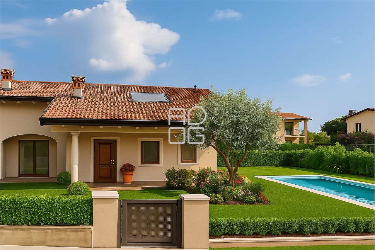 Located in a quite and green setting, with a pleasant open view of the countryside and just a short distance from Desenzano del Garda and Sirmione, we offer a spacious semi-detached end villa in unfinished condition, to be completed and customized by the buyer at their own expense.