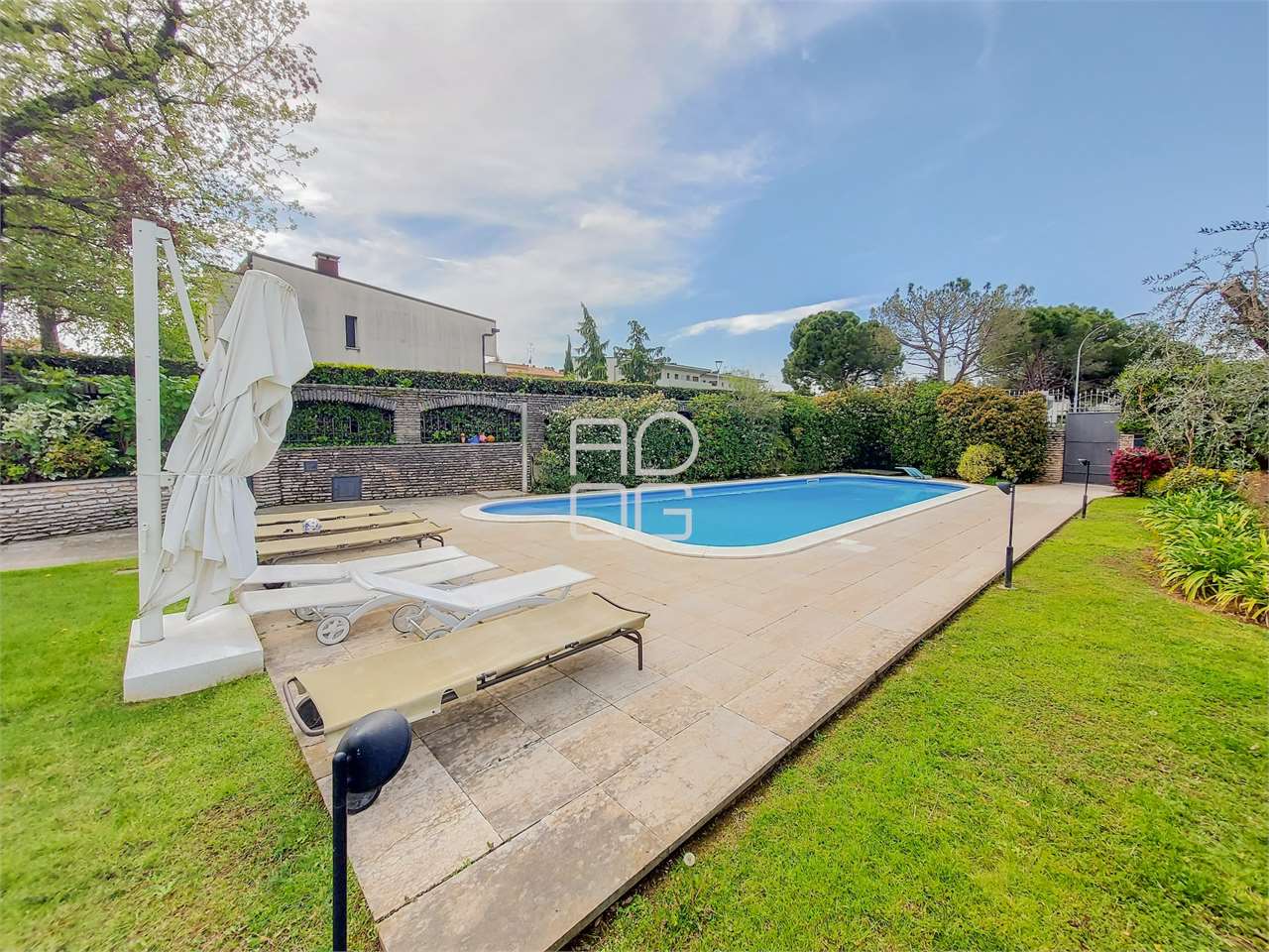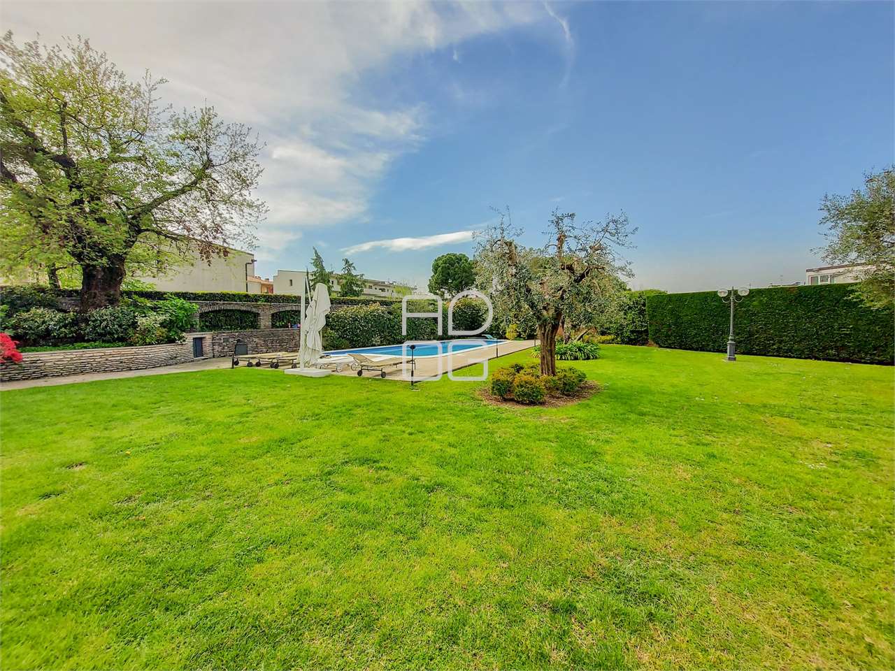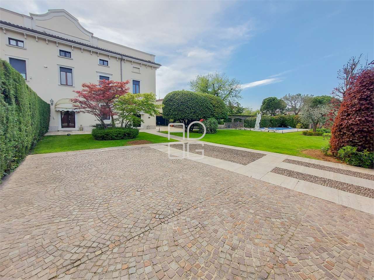 Just 350 meters from the lakefront promenade and the beach, a short distance from the center of Desenzano del Garda and convenient to all services, we offer for sale elegant historic residence with private pool. The property, subject of a recent renovation, boasts about 1.000 sqm of private garden and is spread over two levels above ground. On the ground floor: living room, dining area with fireplace, separate and habitable kitchen, master bedroom with dedicated bathroom and walk-in closet, service bathroom and laundry room. Outside we find two large porches equipped with tables and chairs, garden, swimming pool and entrance courtyard where it is possible to park up to three cars. On the second floor: three bedrooms, two bathrooms, balcony and terrace. A double garage and a convenient storage room complete the property. The property is sold fully furnished as shown in the photos. Possibility to buy separately, a newly renovated and fully furnished large two-room apartment with exposed beams, located on the second and last floor. The apartment, consisting of living room, open kitchen, master bedroom, study and bathroom, enjoys a totally independent entrance and is ideal for guests or as an investment to put into income. We remain available for more information and site visits.