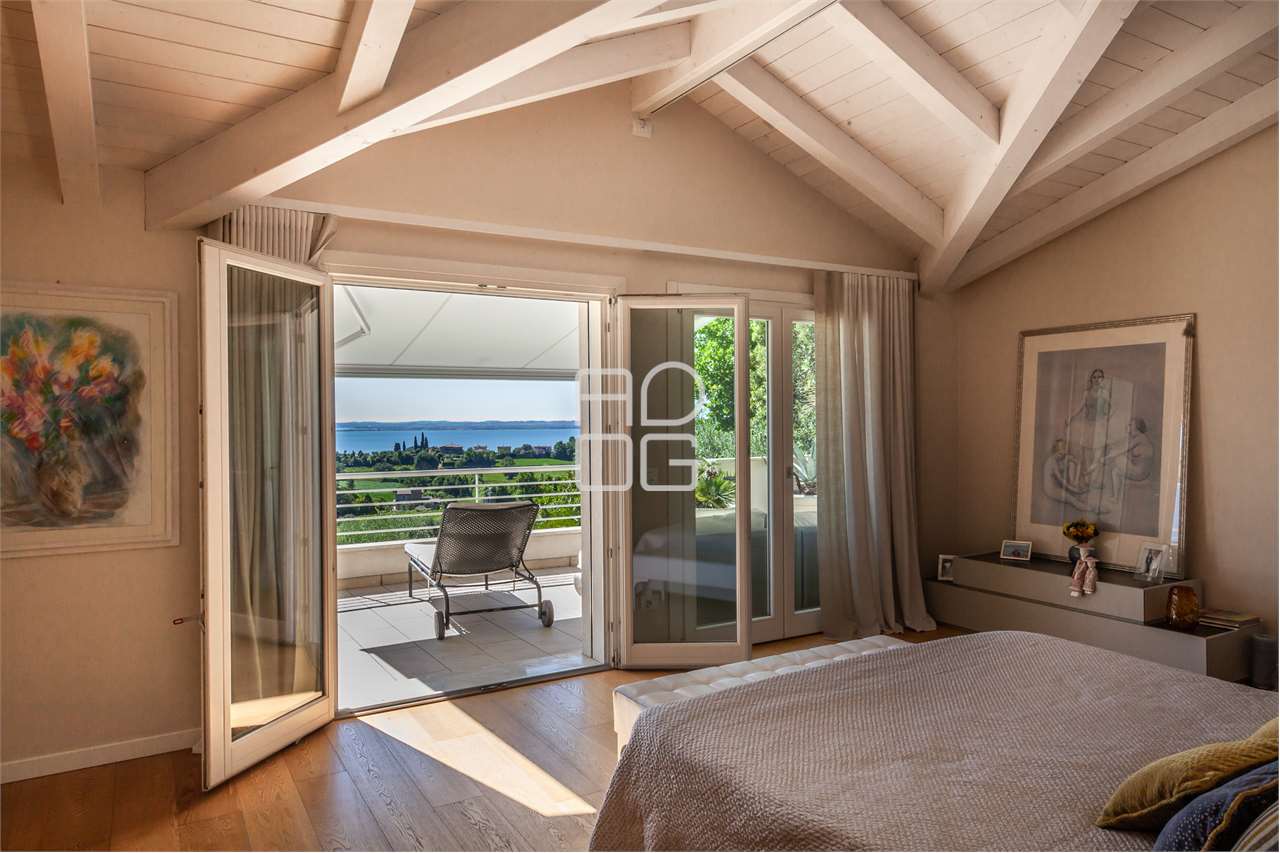 In an exclusive hillside position, on the border between Soiano del Lago and Padenghe sul Garda, we are pleased to present this magnificent detached villa with private pool, landscaped garden, and stunning lake view. Nestled in a refined residential context, the property offers absolute privacy, excellent sun exposure, and spacious, bright interiors.