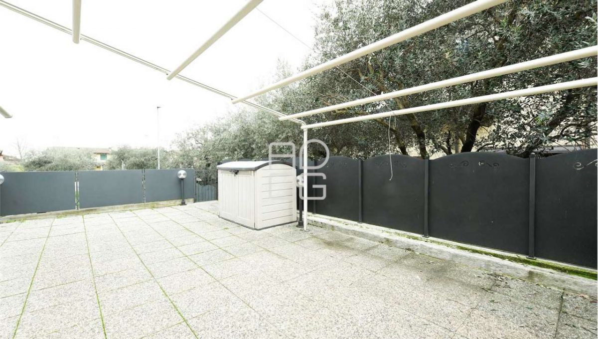 In a quiet residential area with beautiful green settings, in a context of only four units each with independent access, we offer for sale a large and bright three-room apartment complete with large private outdoor area. The flat consists of a comfortable entrance hall, a large living area, a comfortable separate kitchen and a beautiful veranda, currently used as a living area, from which we directly enter the large private outdoor area consisting of a paved area complete with cover equipped with motorised curtains, a garden area with synthetic grass and beautiful olive trees and finally a second convenient independent pedestrian access. Returning inside and crossing through the living area, we come to the convenient hallway leading to the sleeping area consisting of a single bedroom, a bathroom with shower and a double bedroom. The property is completed by a convenient double garage in the basement connected by a private external staircase. Solution in excellent condition, with attention to detail and complete with excellent finishes, enriched by the possibility of creating, in the garden area, a private swimming pool. Ideal both as a first home and as a holiday home. We remain at your disposal for further information and on-site visits.