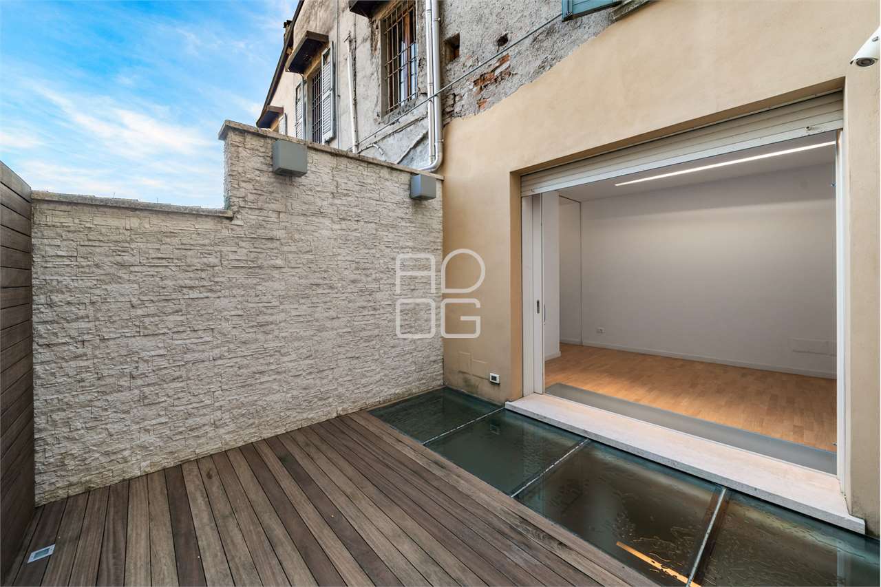 L’accesso avviene attraverso il cortile del palazzo, da cui si raggiunge un dehor privato, uno spazio esterno riservato e piacevole, ideale per pranzi e momenti di relax all’aperto durante la bella stagione.