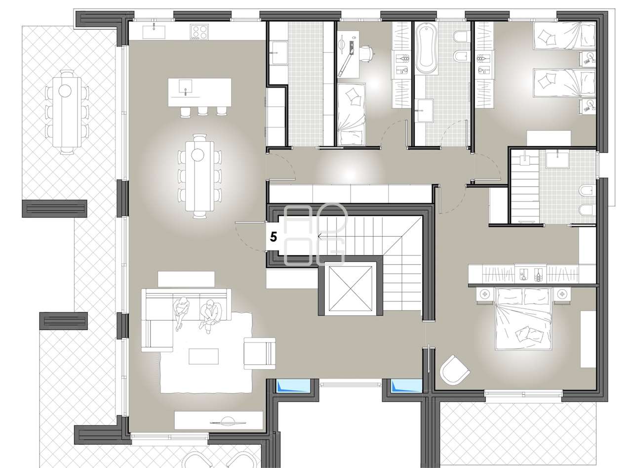 • Garage quadruplo al piano interrato, collegato direttamente con ascensore (incluso nel prezzo)