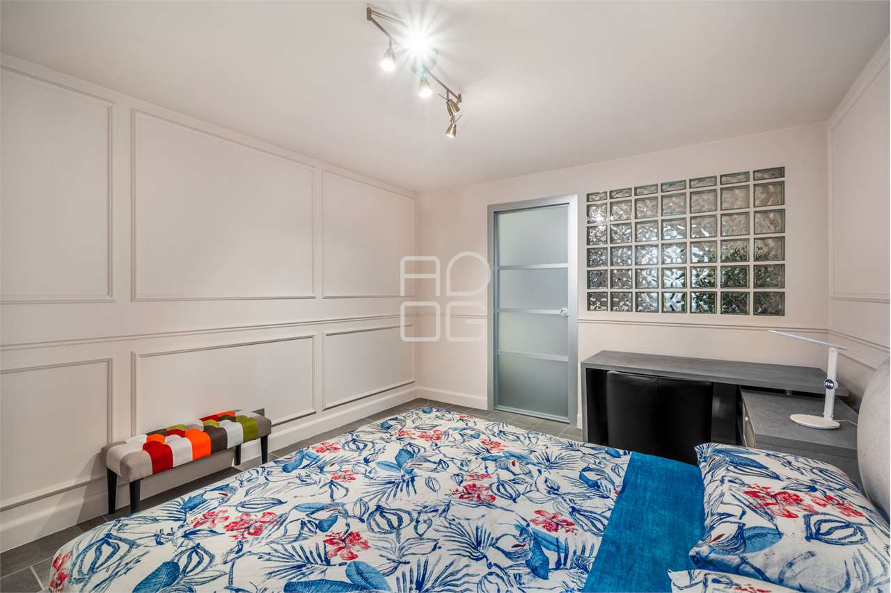 La zona giorno, luminosa e accogliente, offre una cucina arredata su misura con elettrodomestici di alta qualità, soggiorno con accesso diretto al giardino privato e plateatico ideale per pranzi e cene all’aperto.Al piano principale si trovano inoltre una camera matrimoniale e un bagno moderno. Al livello inferiore sono presenti due ulteriori camere, un secondo bagno con lavanderia e una spaziosa area living multifunzionale, perfetta come zona relax o per momenti di convivialità. Completano la proprietà un garage e un posto auto privato.L’appartamento, recentemente ristrutturato e rifinito con gusto, rappresenta una soluzione ideale come prima casa, residenza vacanze o appoggio esclusivo sul lago.Comfort, eleganza e riservatezza nel cuore di Desenzano del Garda.