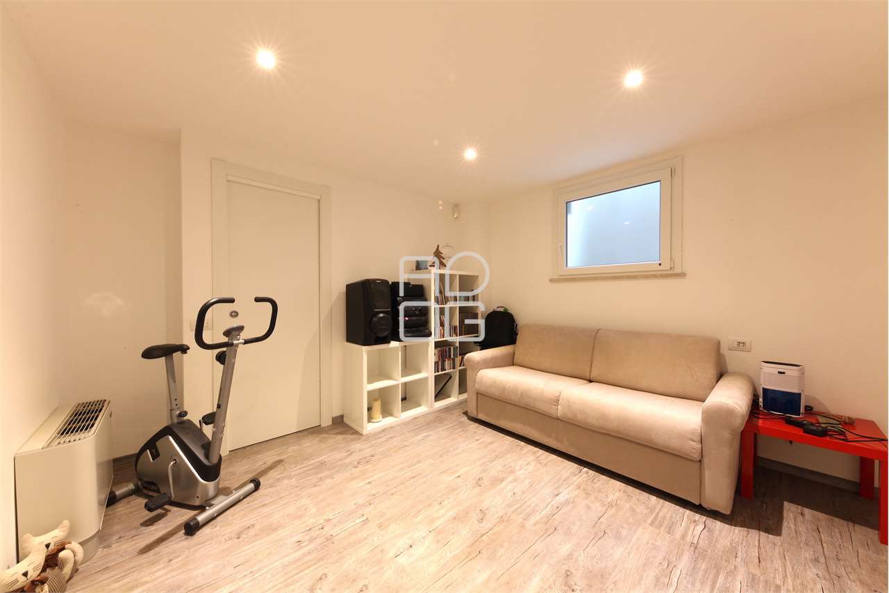 Inserito in elegante e signorile palazzina quadrifamigliare di recente costruzione, situata in zona residenziale e prestigiosa nel Comune di Padenghe sul Garda non distante dal lago, dal centro e dai principali servizi, disponibile importante unità posta al piano terra con interrato direttamente collegato da scala interna e grande area esterna privata con giardino piantumato su tre lati della casa, ampio portico coperto e gradevole scorcio di vista lago. La casa, dotata di tutti comfort e con un altissimo livello di finiture tra cui riscaldamento a pavimento, parquet, aria condizionata, modernissimo sistema anti-intrusione, oscuranti automatici e pregevoli materiali di finitura, si compone di grande e luminosissima zona living e pranzo con cucina separata e ampie vetrate sul portico e giardino, dalla zona giorno si accede alla zona notte dove troviamo un bagno con finiture di design, due camere matrimoniali di cui una con bagno e cabina armadio, al piano interrato troviamo ampia taverna, la lavanderia e zona spa. Completano la proprietà un box doppio ed un posto auto coperto. Contesto dotato di piscina a disposizione delle quattro prestigiose unità. Arredamento su misura.
