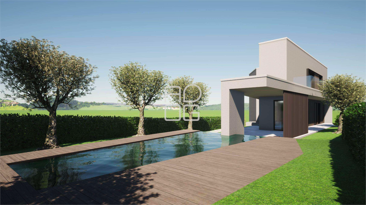 In una delle posizioni più affascinanti e ricercate di Sirmione, a pochi passi dal lago e comoda a tutti i principali servizi, è in progetto una moderna villa singola di design, pensata per offrire comfort, eleganza e qualità in un contesto residenziale di alto livello. La villa, completamente indipendente e circondata da un ampio giardino privato, si sviluppa su due piani fuori terra oltre a un piano interrato, tutti collegati internamente da una comoda scala. Al piano terra si trova una spaziosa e luminosa zona giorno con cucina a vista e bagno di servizio, impreziosita da ampie vetrate che permettono l’accesso diretto al giardino, a un portico ideale per pranzi e momenti all’aperto, e alla piscina privata con zona solarium. Al primo piano si sviluppa la zona notte composta da una camera padronale con cabina armadio, bagno privato e accesso a una grande balconata con vista sul verde, una camera singola con uscita sulla stessa balconata, un secondo bagno con doccia e una terza camera doppia con cabina armadio. Il piano interrato ospita un ampio garage per due auto, un locale tecnico, un bagno con doccia e lavanderia, oltre a un grande spazio multifunzionale da personalizzare secondo le proprie esigenze, come palestra, taverna o sala hobby. Un’opportunità rara per chi desidera costruire e personalizzare la propria futura residenza in una delle località più esclusive del Lago di Garda. Siamo a disposizione per fornire ulteriori dettagli, planimetrie e per organizzare incontri di approfondimento anche con l’impresa costruttrice.
