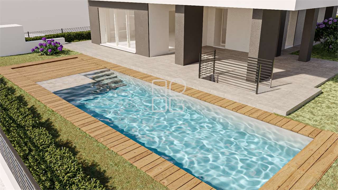 Situata in bellissima e signorile zona residenziale del Comune di Padenghe s/G, attorniata da immobili prestigiosi, con vista aperta e panoramica con scorci di vista lago, proponiamo esclusiva villa con giardino e piscina privata. Dal Design moderno e accattivante con linee squadrate e giochi di volumi, la villa è stata pensata per clientela esigente che vuole realizzarsi una villa contemporanea dove poter soggiornare per i periodi estivi o come casa primaria. Cristalli, luci, riscaldamento a pavimento, climatizzazione, antisismica, impianti solare fotovoltaico, pompa di calore, materiali di altissima qualità sono alcune delle caratteristiche di questa prestigiosa proprietà che verrà costruita in classe A con tutti comfort abitativi conseguenti. L’abitazione, disposta su due livelli fuori terra più interrato, è composta a piano terra da ampia zona living, pranzo e cucina dotati di grandi vetrate dalle quali accedere alle generose pertinenze esterne quali porticati coperti e pergolati oltre che al giardino e alla zona prendisole della piscina privata, un bagno di servizio ed una stanza studio, attraverso la scala arriviamo al piano primo dove troviamo la camera padronale con bagno privato, altre due camere matrimoniali con altro bagno oltre a splendide terrazze che circondano l’abitazione con accesso da tutte le stanze e con bella visuale aperta e panoramica. Salendo ancora di un piano troviamo lo splendido solarium a tetto con bellissima ed aperta visuale sul lago. Attraverso la scala interna si accede alla zona interrata dove troviamo una stanza multiuso dove poter realizzare uno studio o lavanderia o una zona relax SPA, il locale tecnico, un ripostiglio e l’ampio garage adatto ad ospitare più autovetture. Proposta di assoluta qualità e altissimo livello di finiture. Restiamo a disposizione per ogni ulteriori informazione e visite sul posto.
