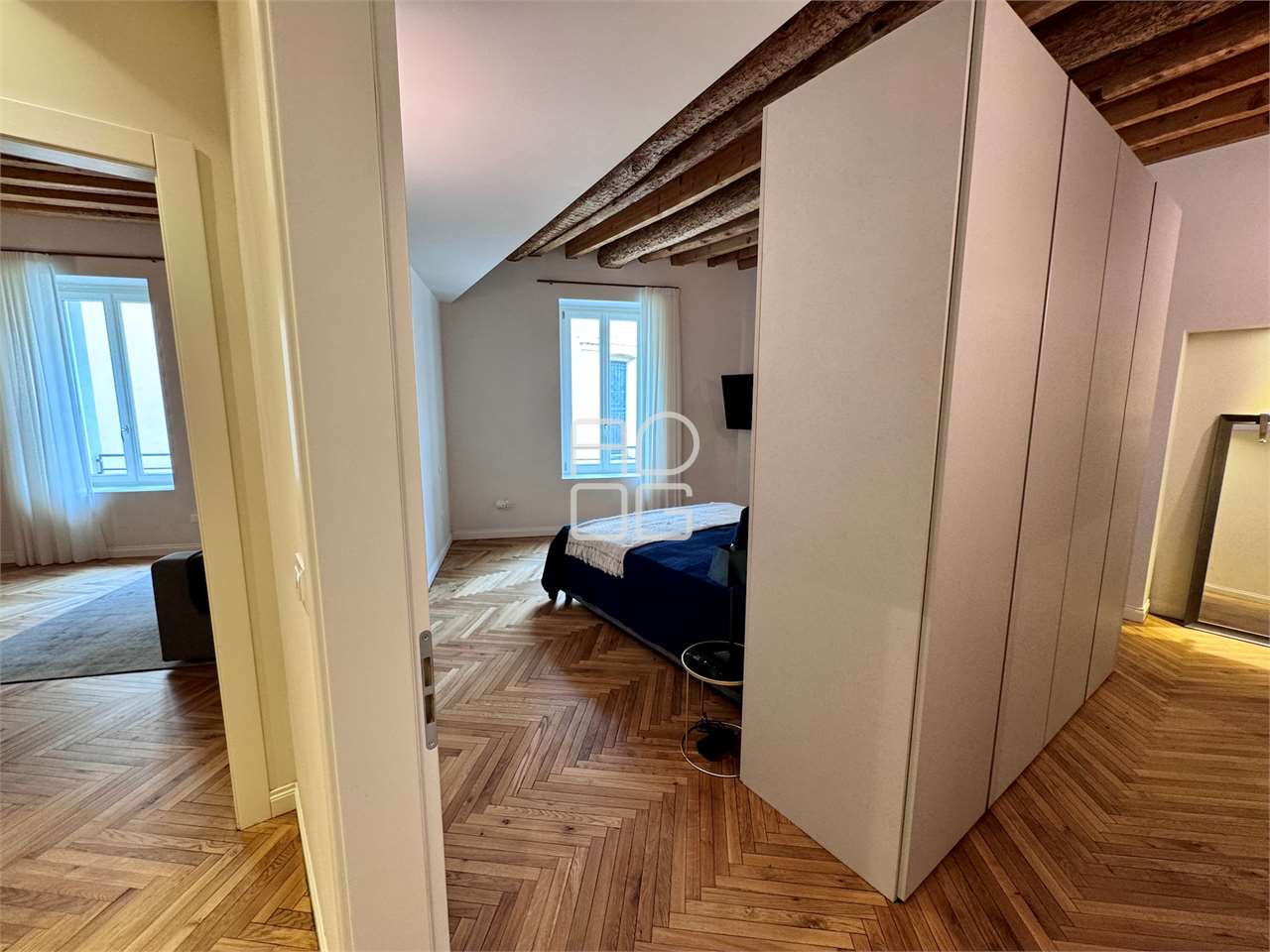Nel pieno centro storico di Desenzano, a due passi dal lago, proponiamo in vendita un esclusivo appartamento inserito in un elegante palazzo storico recentemente oggetto di accurata ristrutturazione. La proprietà si trova al primo piano, comodamente servita da ascensore, e si distingue per la generosità degli spazi, la cura dei dettagli e le pregiate finiture che ne esaltano il carattere raffinato. L’ingresso si apre su un comodo atrio che introduce nella luminosa zona giorno composta da una moderna cucina a vista e un’ampia zona living arricchita da grandi finestre che affacciano sul suggestivo centro storico e consentono l’accesso a un pratico balcone con vista. Attraverso un ampio corridoio si accede alla zona di servizio completa di un bagno e di un grande locale tecnico facilmente adattabile a ripostiglio e lavanderia. La zona notte è composta da una spaziosa camera padronale con bagno en suite, una seconda ampia camera da letto e un ulteriore bagno finestrato. Completano la proprietà un comodo vano sottoscala ideale come cantina o ulteriore spazio di deposito e due posti auto, uno interno alla corte comune dello stabile e l’altro esterno ma situato a pochi passi. Una soluzione abitativa unica ed esclusiva che coniuga eleganza, comfort e posizione strategica. Ideale sia come abitazione principale che come raffinata casa vacanze, perfetta per vivere e godere la magia del Lago di Garda in ogni stagione con tutti i servizi del centro a portata di mano.