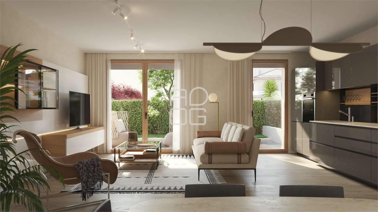 In contesto esclusivo proponiamo elegante appartamento quadrilocale al piano terra con portico e giardino, inserito in moderno complesso residenziale di sole 11 unità abitative, dotato di piscina condominiale, situato nel centro di Desenzano del Garda.