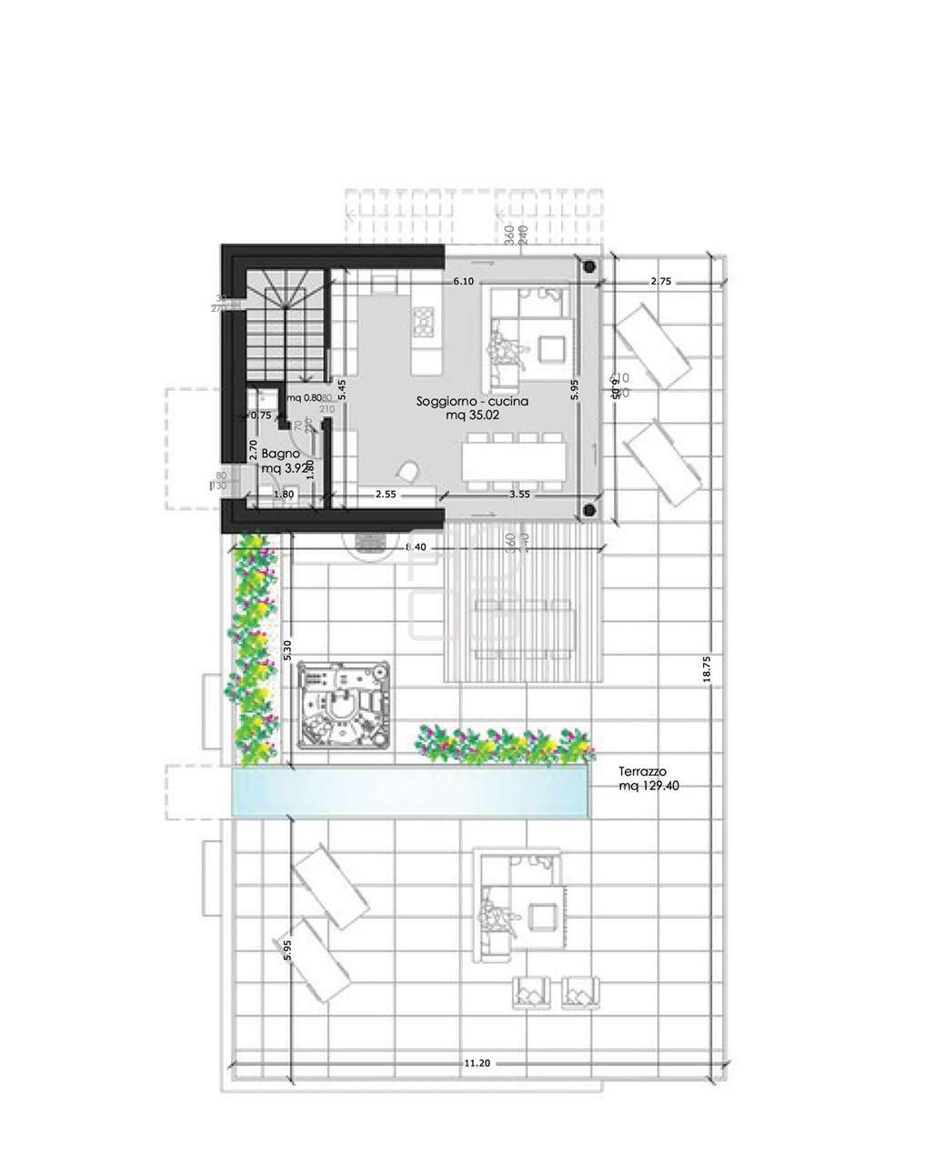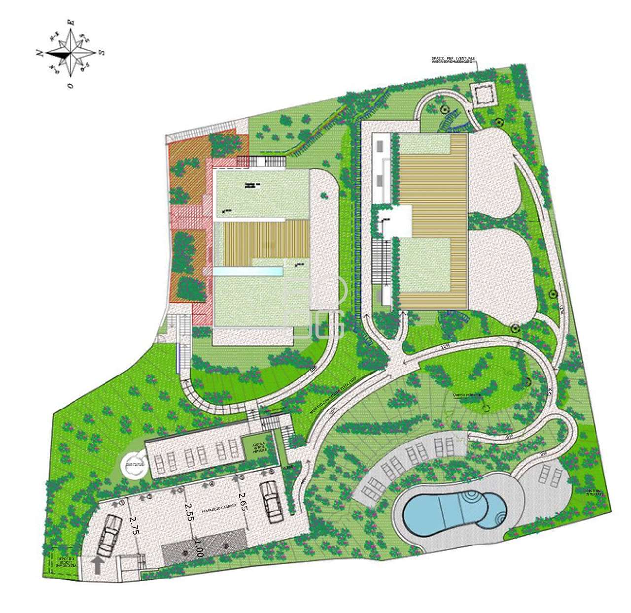 Particolare attenzione è riservata alle aree verdi comuni, curate in ogni dettaglio, e alla piscina con bordo a sfioro, dotata di illuminazione scenografica e zona solarium.