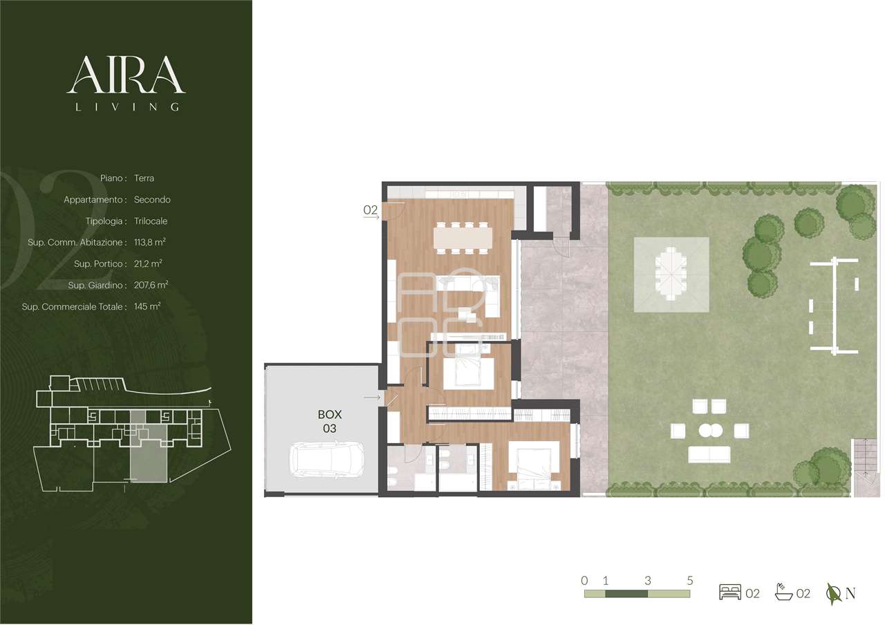 Il progetto prevede appartamenti di grande prestigio, caratterizzati da ampia luminosità, grandi vetrate e generosi spazi interni. Le unità al piano terra dispongono di giardini privati e ampi portici, mentre gli appartamenti al piano primo offrono spaziose terrazze panoramiche. Tutte le abitazioni godono di splendida vista sul Lago di Garda, sulle colline circostanti e sul verde del Garda Golf.