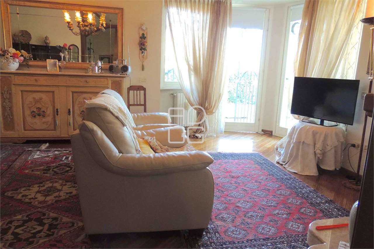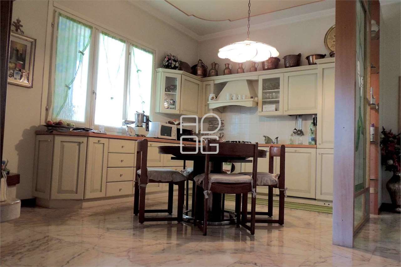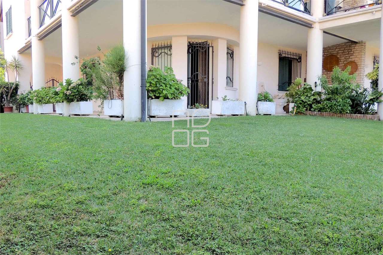 In elegante residenza tra il centro del paese e la stazione ferroviaria, zona tranquilla e signorile, proponiamo in vendita signorile e importante appartamento posto al piano terra con ampio portico e giardino privato su tre lati.