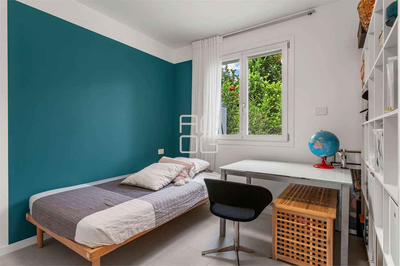 La luminosità degli ambienti, il doppio giardino fronte e retro, il portico vivibile e la vista sulla bellissima piscina regalano spazi unici da vivere in ogni stagione.