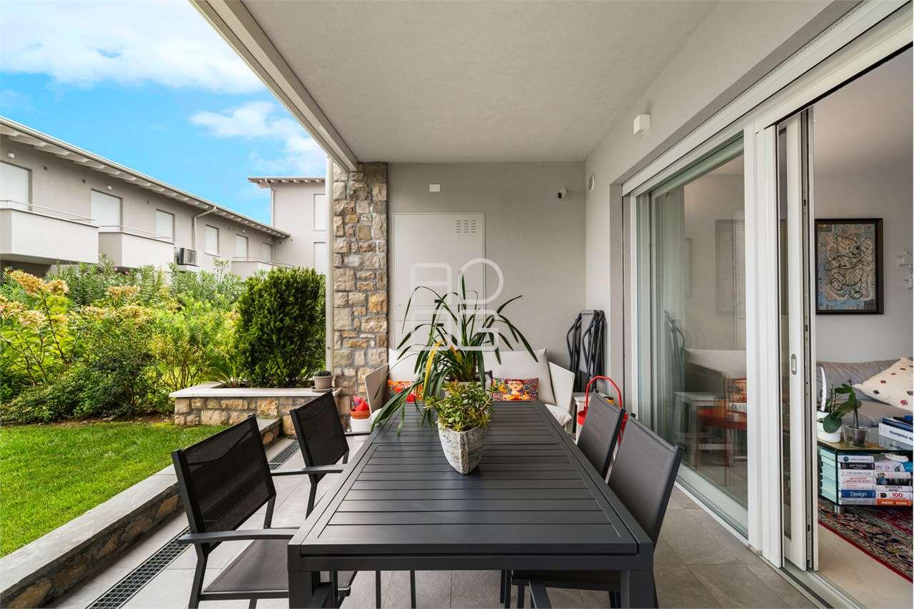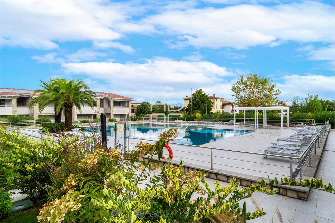 In un elegante residence con splendida piscina condominiale, proponiamo raffinato trilocale al piano terra, edificato a luglio 2023 e pari al nuovo.