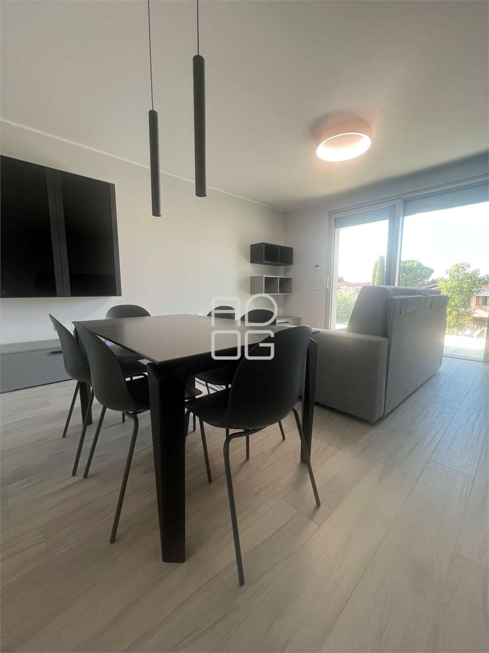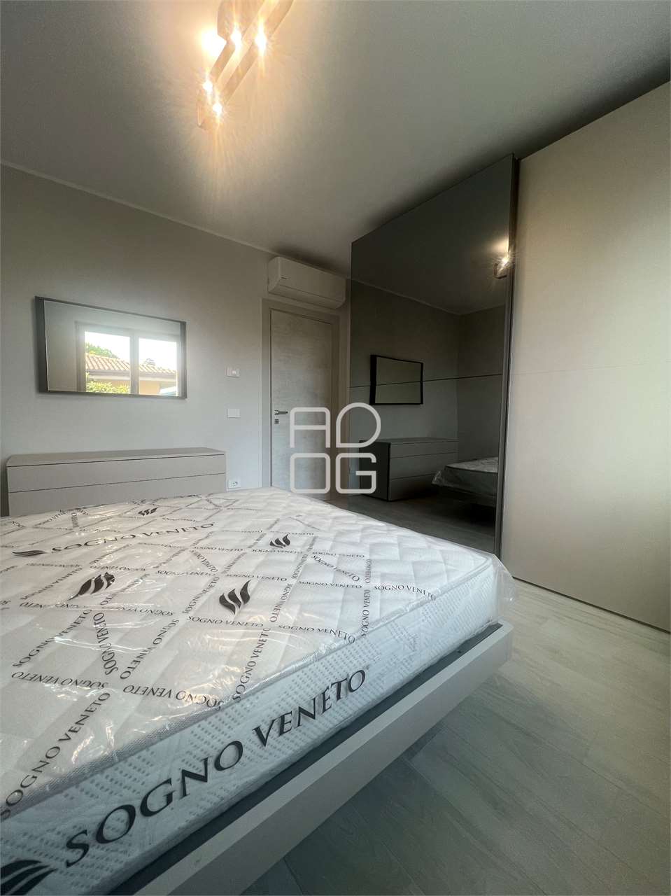 In una raffinata palazzina di sole quattro unità abitative, proponiamo in affitto un elegante trilocale nuovo, mai abitato, situato al primo piano con ascensore. L’appartamento si apre su un luminoso soggiorno con angolo cottura e accesso a una grande terrazza affacciata sulla piscina, ideale per momenti di relax e convivialità. La zona notte comprende una camera matrimoniale, una camera singola e due bagni: uno completo di doccia e un secondo dotato di servizi e lavanderia annessa. L’abitazione è completamente arredata con gusto moderno e materiali di qualità, dotata di impianto di riscaldamento a pavimento con pompa di calore e aria condizionata, in classe energetica A4, per garantire il massimo comfort in ogni stagione. A completare la proprietà vi è una comoda autorimessa doppia al piano interrato. Soluzione ideale per una coppia alla ricerca di un ambiente elegante, riservato e di alto livello. Un’opportunità esclusiva in un contesto abitativo tranquillo e contemporaneo.Restiamo a completa disposizione per ulteriori informazioni e per organizzare eventuali sopralluoghi.