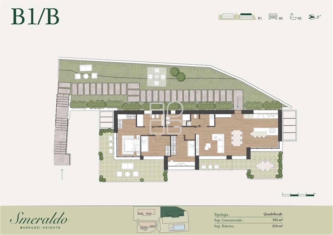В самом сердце озера Гарда, в районе Баркуцци (Лонато-дель-Гарда), создаётся Smeraldo — эксклюзивный жилой проект для тех, кто ценит элегантность, спокойствие и потрясающий панорамный вид на озеро. Комплекс расположен на живописных холмах и состоит из 5 престижных апартаментов с просторными планировками, расположенных на террасах, что обеспечивает каждой резиденции полностью открытый вид на озеро. Апартаменты спроектированы так, чтобы обеспечить максимально светлые и комфортные пространства. Большие раздвижные окна расширяют гостиную зону, соединяя её с частными садами, террасами или крытыми верандами, а также с общим бассейном, создавая идеальную плавность перехода между интерьером и природой. Современная архитектура и качественные материалы подчеркивают естественную красоту окружения и превращают каждый день в удовольствие.